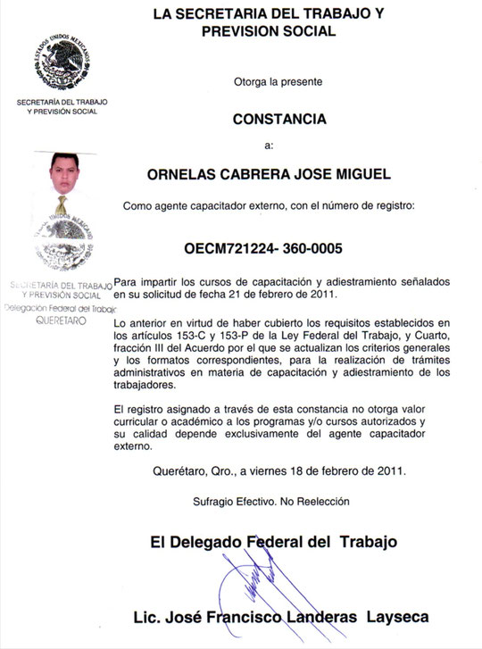 CEDULA DE INSTRUCTOR ANTE LA S.T.P.S.